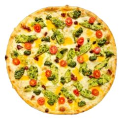 White Garlic Sauce, Mozzarella, Marinated Chicken, Cheddar, Sun Dried Tomatoes, Cherry Tomatoes, Pesto