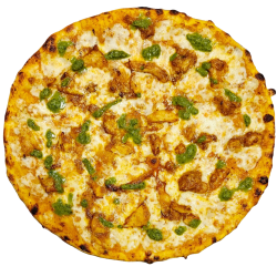 Signature Butter Chicken Sauce, Mozzarella, Marinated Chicken, Mint Chutney,