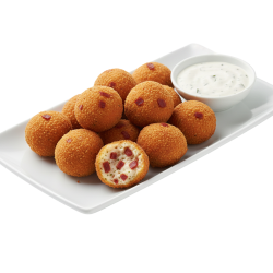 Mozzarella, California Tomato Sauce, Homemade Meatballs, Ricotta, Crushed Red Chili flakes, Red Onion